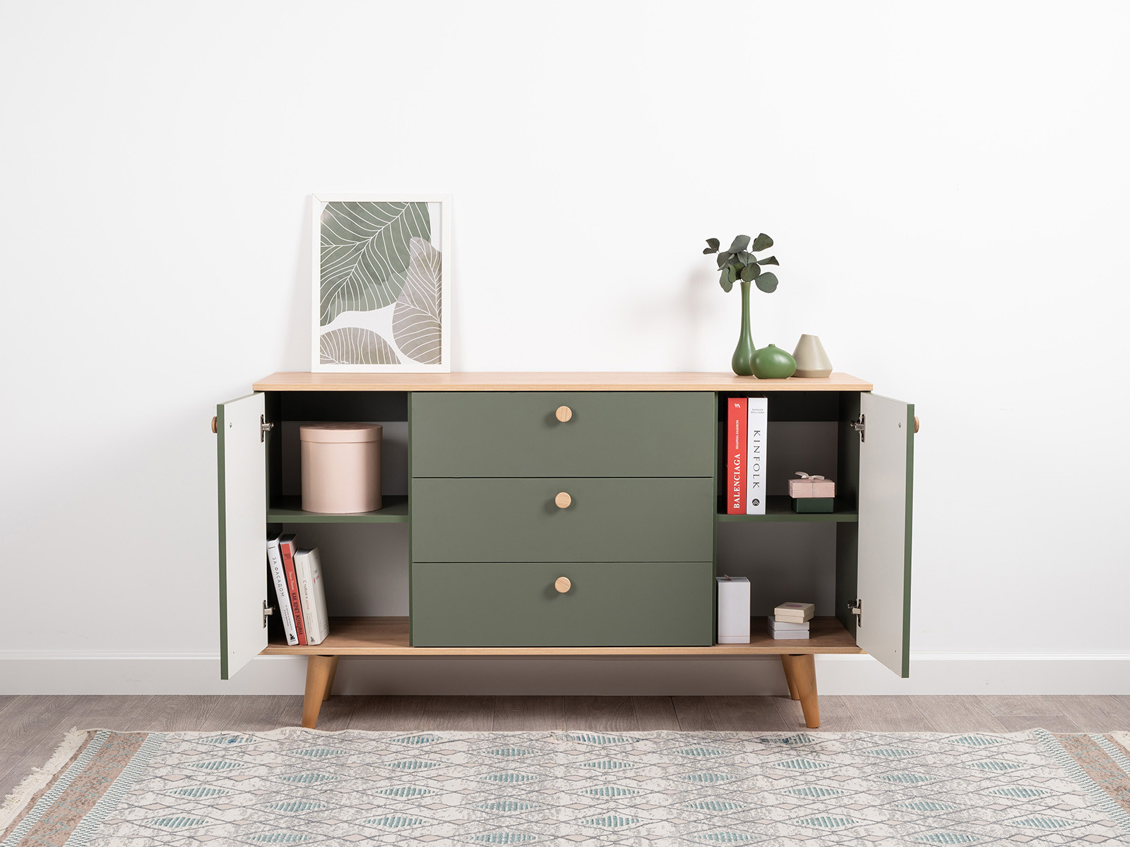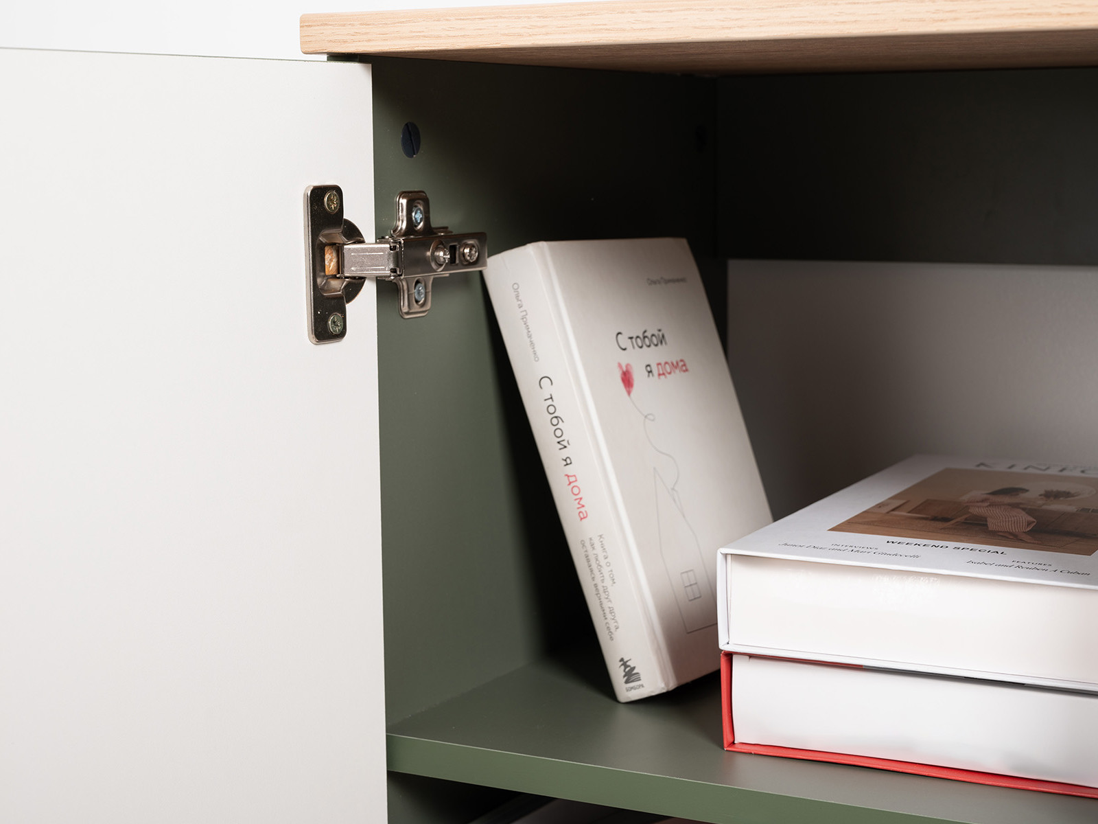 Цветовое решение: Дымчатый Зеленый, Гикори Рокфорд Натуральный, Белый шагрень