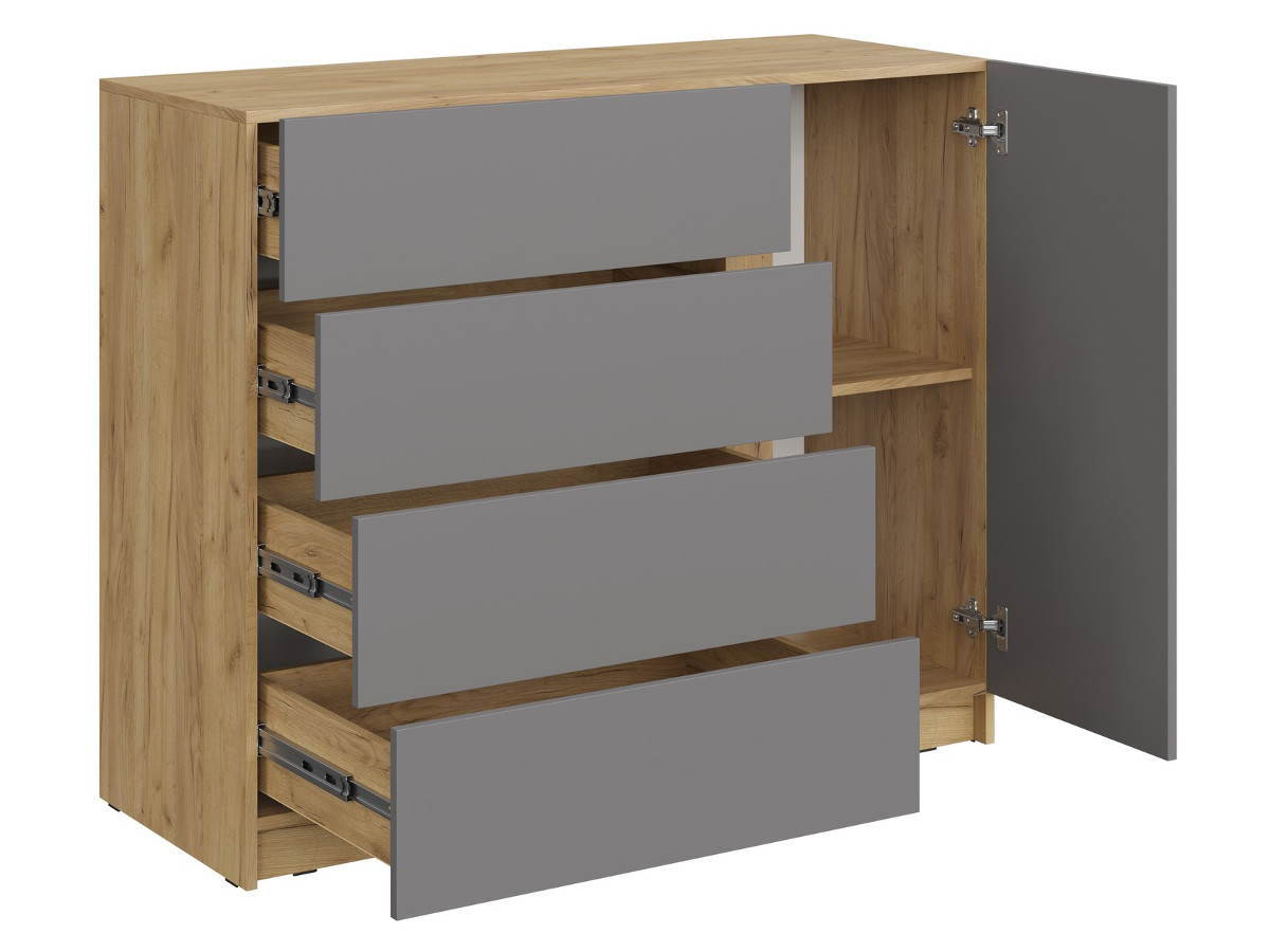 - Комод КМ-001 Бостон ЛДСП дуб крафт золотой-серый шифер