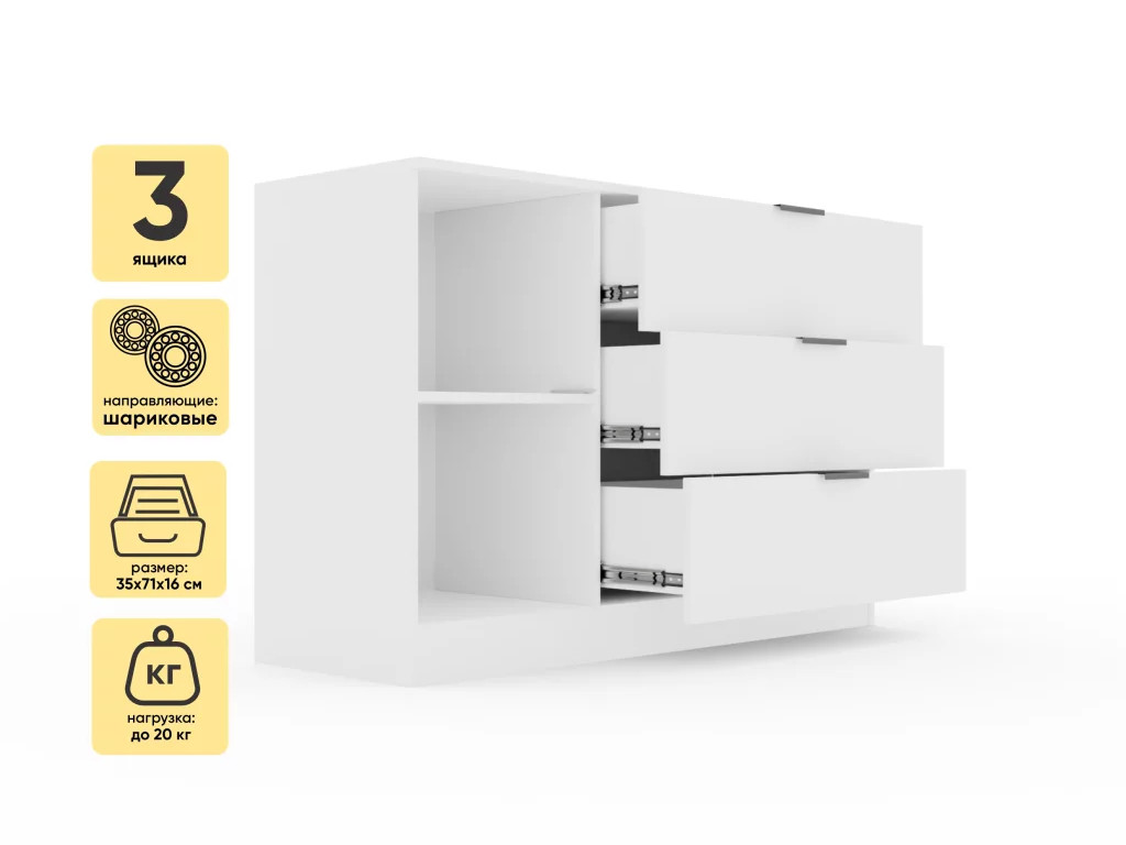 - Комод Монблан 1200 Белый Шагрень