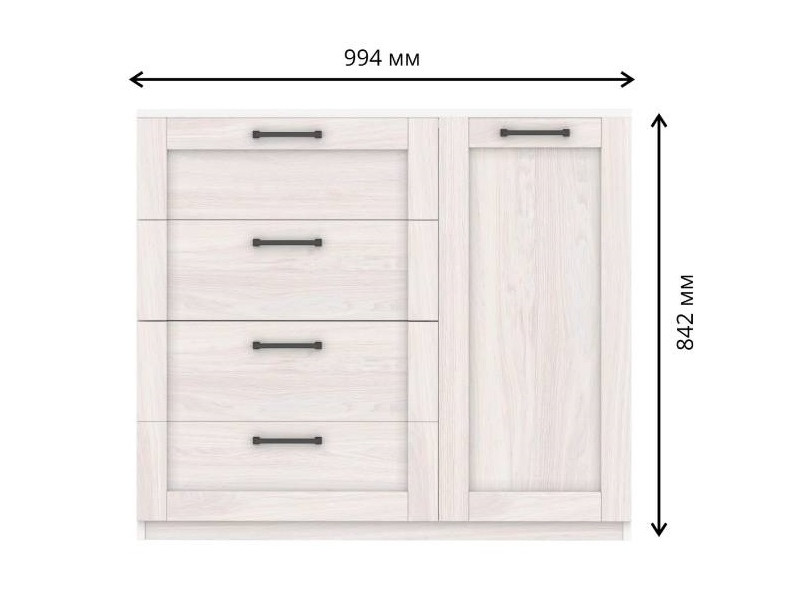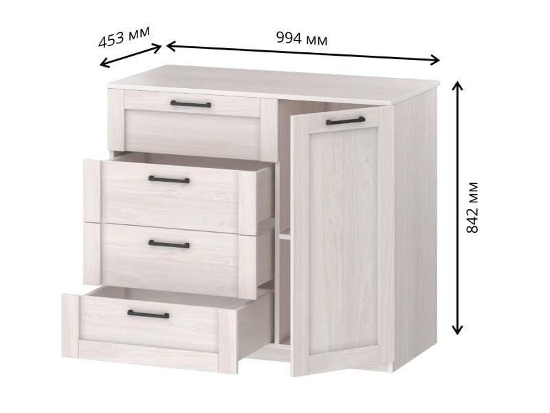 - Комод с 4-мя ящиками и дверкой СГ Классика