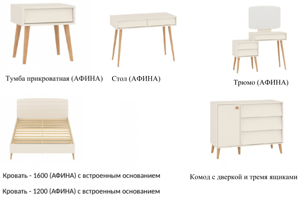 Цена за комплект: Стол, Кровать 1200, Шкаф 2-х дверный, Комод, Тумба прикроватная