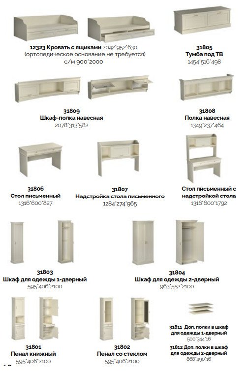 Цена за комплект: Тумба прикроватная, Кровать с ящиками, Стол письменный,Надстройка