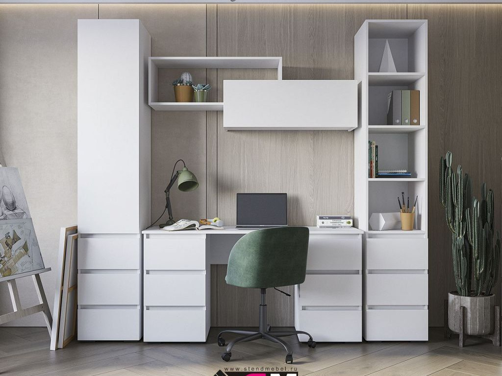Цена за комплект на фото: ПС 02 Письменный стол, ПН 02 Пенал, ПН 03 Пенал, ПЛ 01 Полка