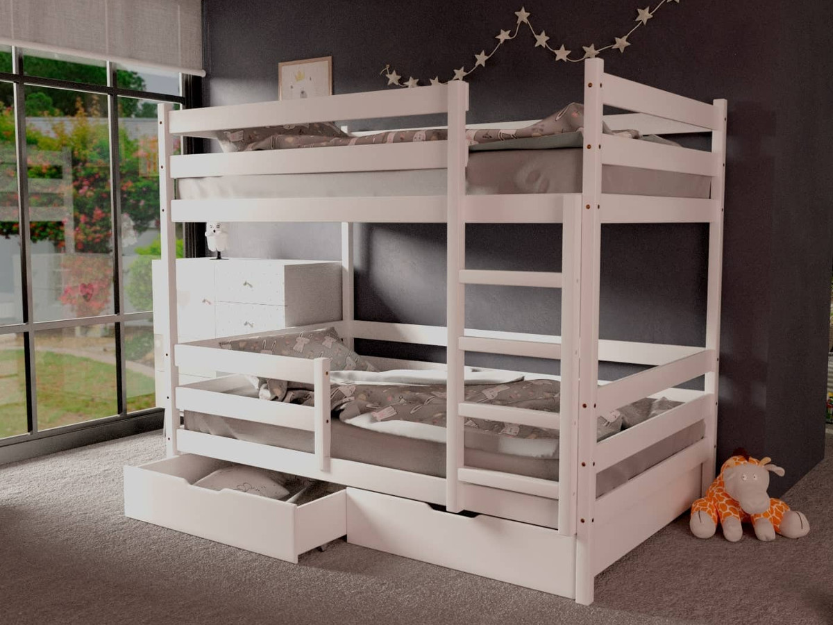 Двухъярусная кровать без крыши белый 80х160 см с ящиками