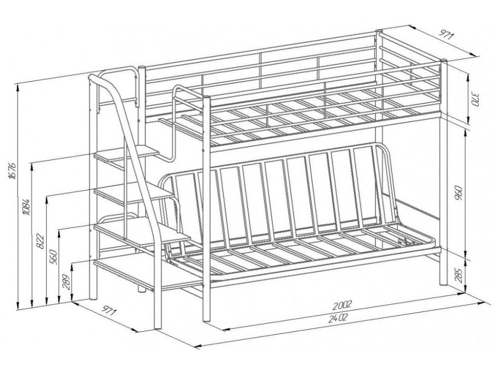 Габариты (ДхШхВ): 2402х971х1676 мм