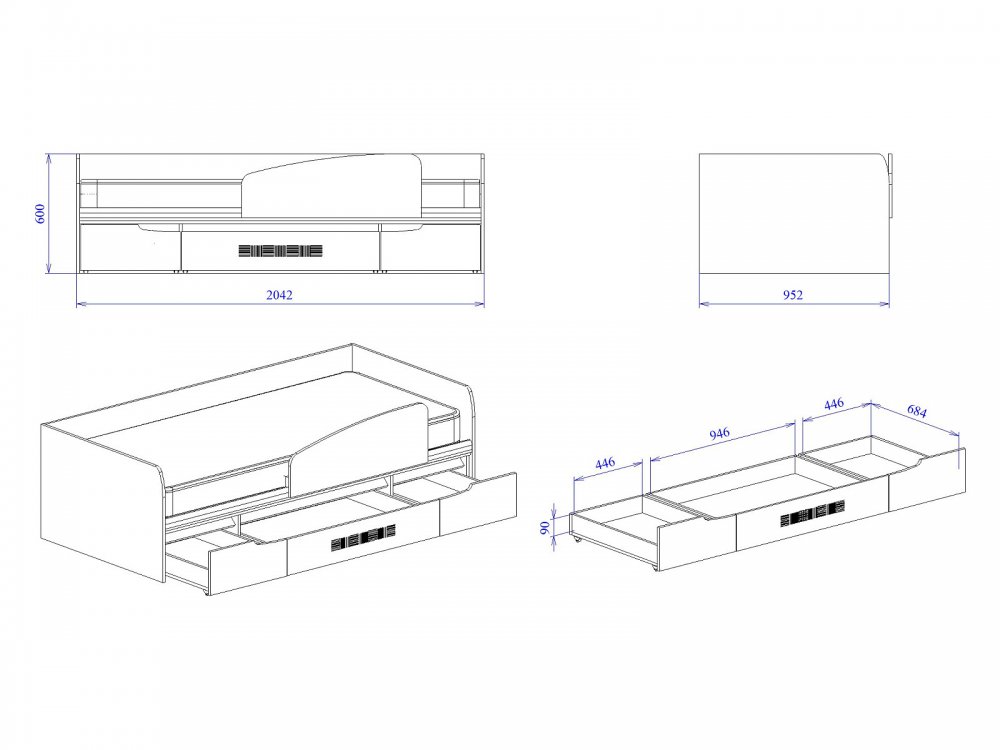 Спальное место: 900*2000 мм