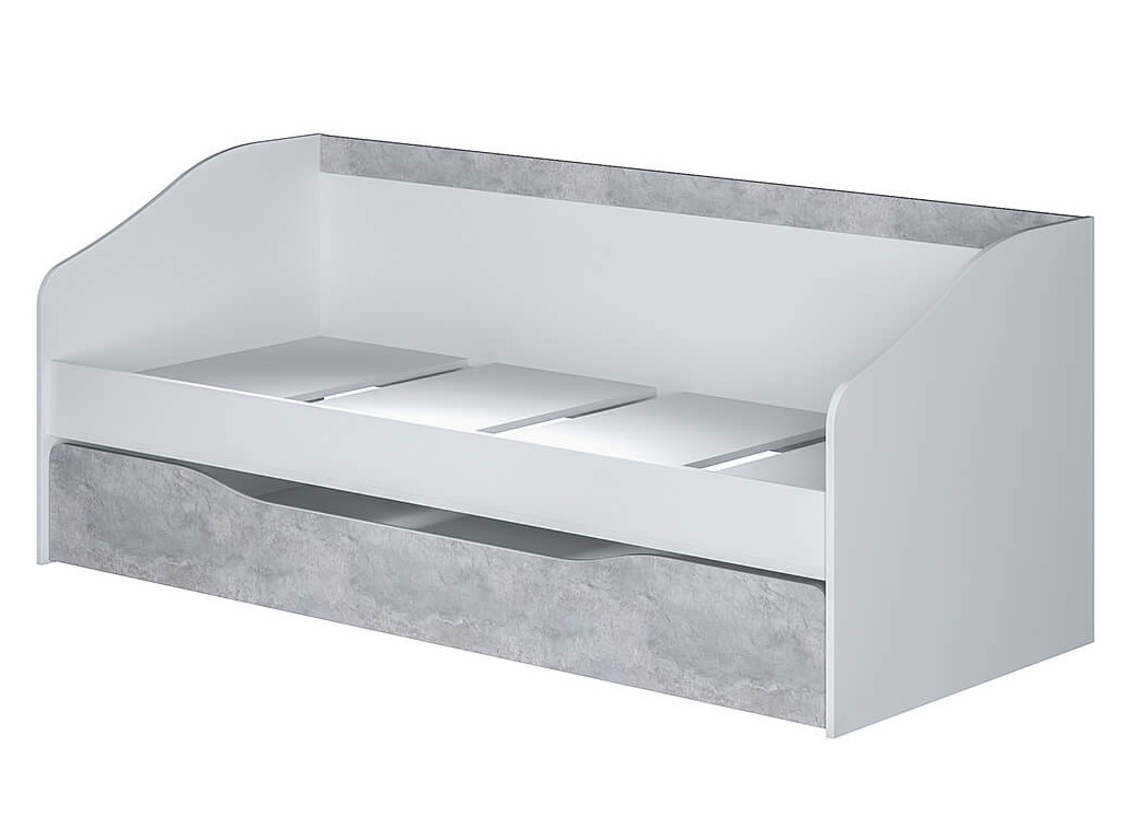 Выдвижной ящик можно использовать как второе спальное место 1860*800 мм; выдвигается на роликовых опорах, установленных на дне кровати.