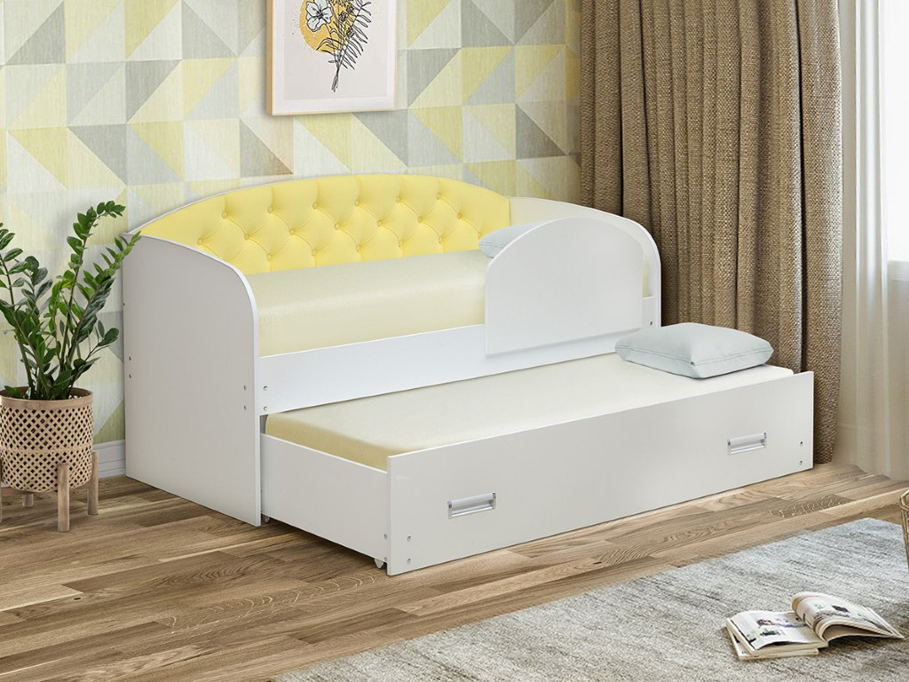 - Кровать детская выдвижная с продольной мягкой спинкой с бортиком