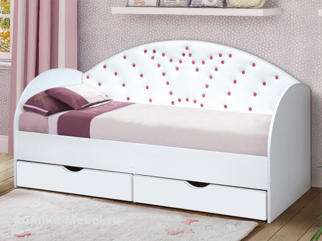 - Кровать с продольной мягкой спинкой Корона №4 800х1600 мм белая