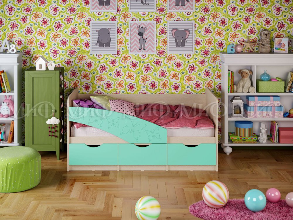- Кровать Бабочки Бирюза матовая