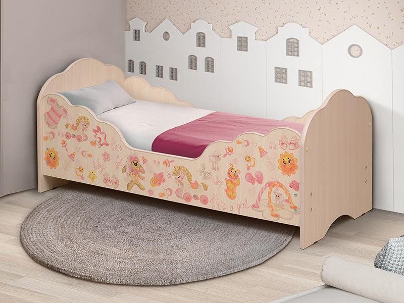 - Кровать детская с бортом Малышка №4 дуб млечный