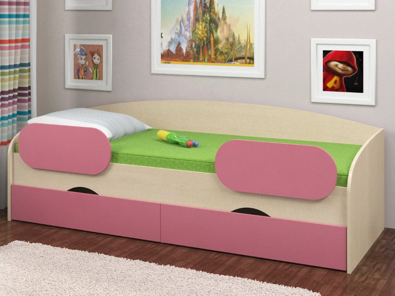 - Кровать Соня 2 дуб молочный-розовый