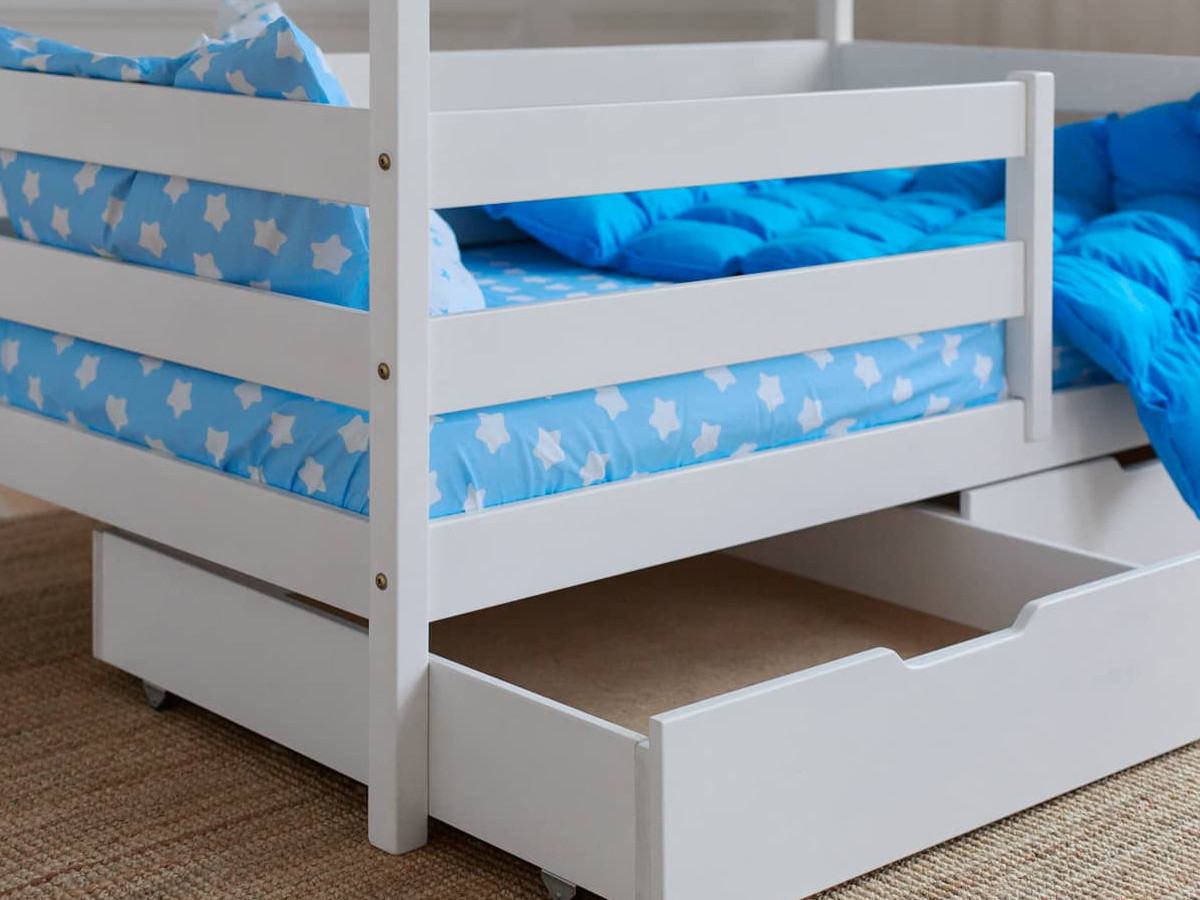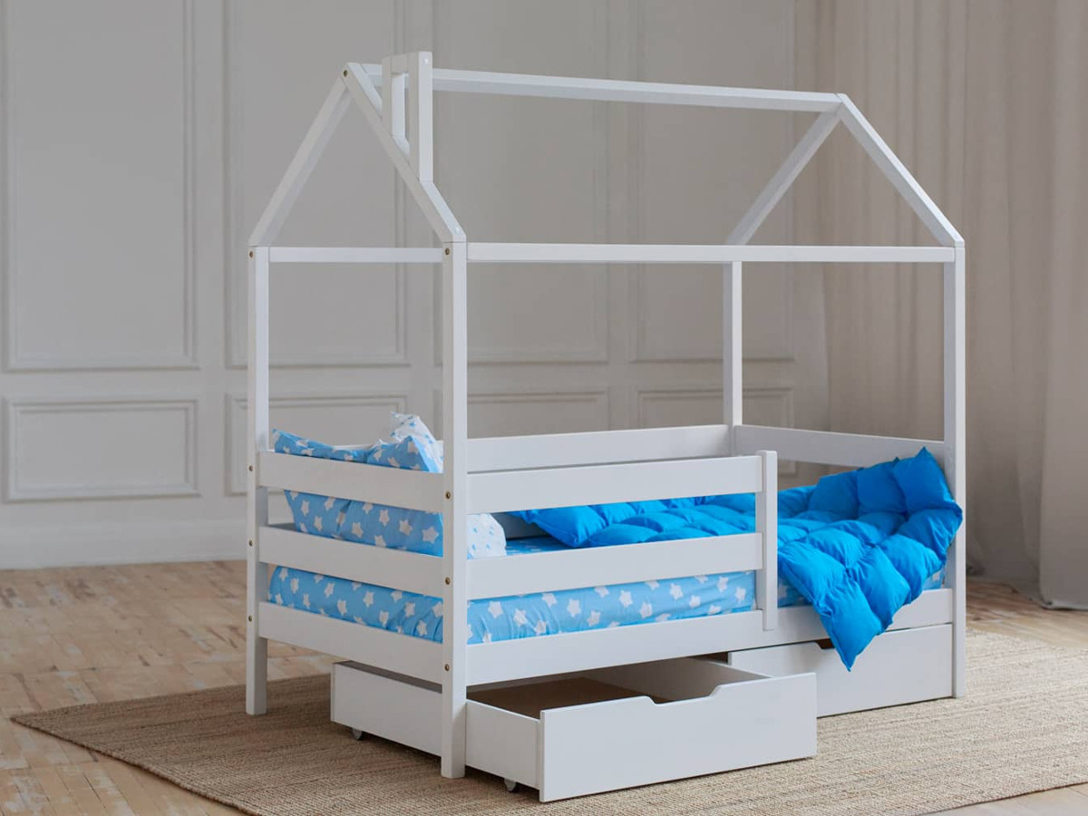 - Кроватка-Домик белый 80х190 см с ящиками