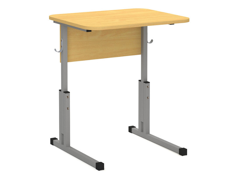 Одноместный ученический стол с закругленными углами, регулируемый по высоте.