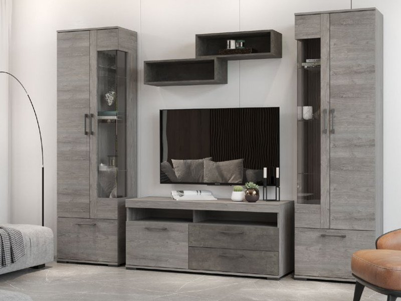 Цена за комплект: Д-4 Тумба под ТВ, Д-8 Полка-ниша (2 шт), Д-3л Пенал со стеклом левый, Д-3п Пенал со стеклом правый