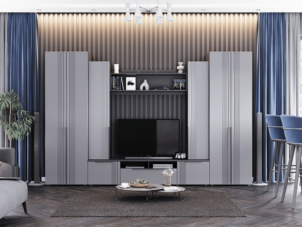 Цена за комплект: Тумба ТВ 2000, Пенал (надстройка) (2шт), Полка настенная №1, Пенал с полками (2шт)
