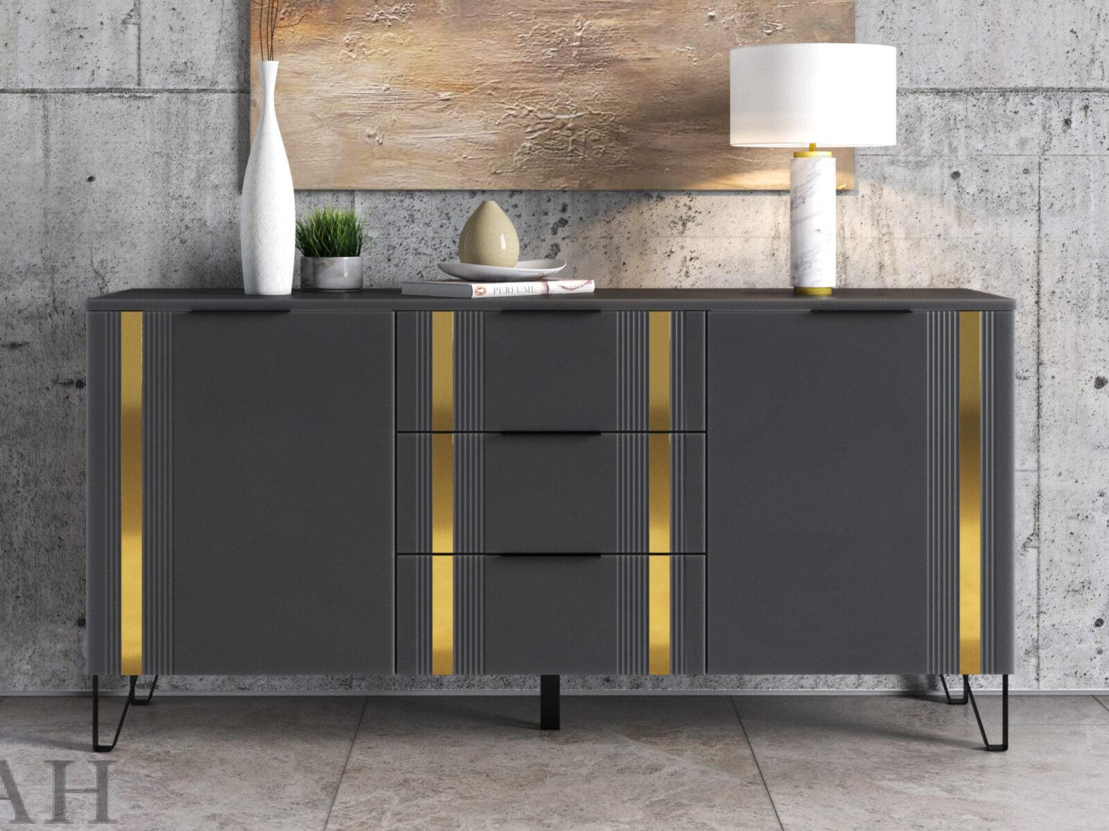 - Фасады МДФ украшены декоративной металлической лентой в цвете "Золото браш".