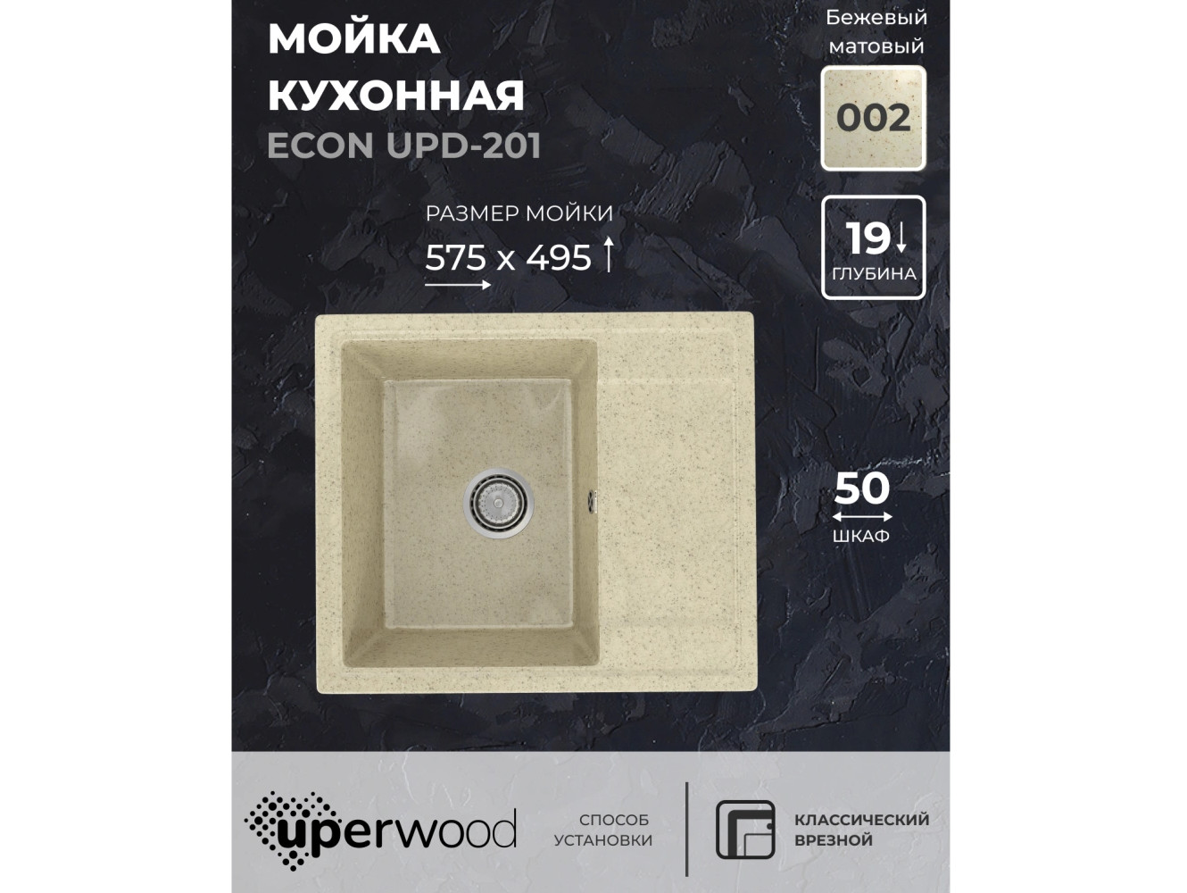 - Кухонная мойка Uperwood ECON UPD-201-002 бежевая матовая
