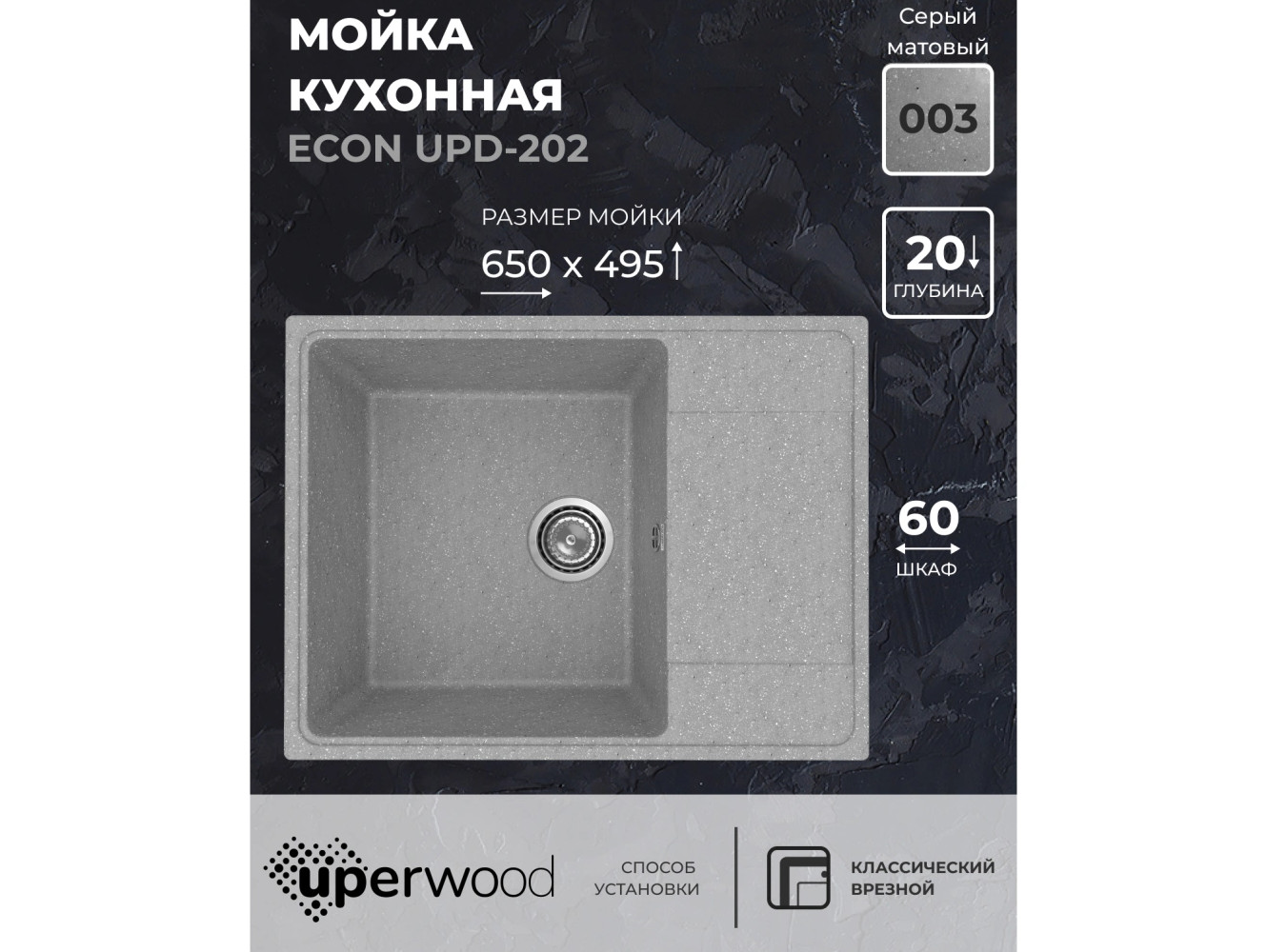 Кухонная мойка Uperwood ECON UPD-202-003 серая матовая