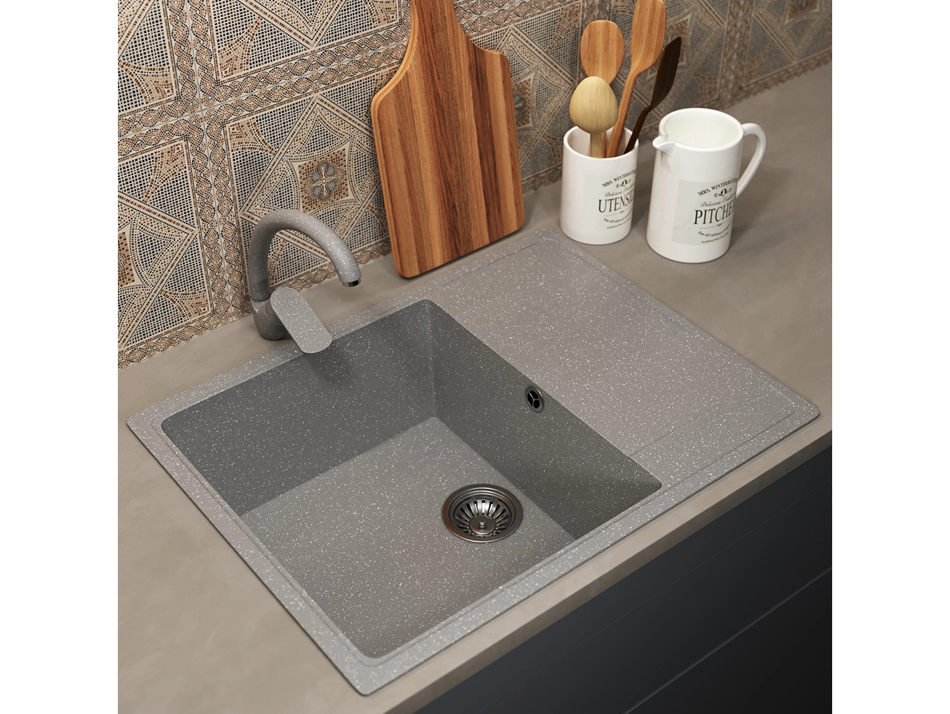 - Кухонная мойка Uperwood ECON UPD-202-003 серая матовая