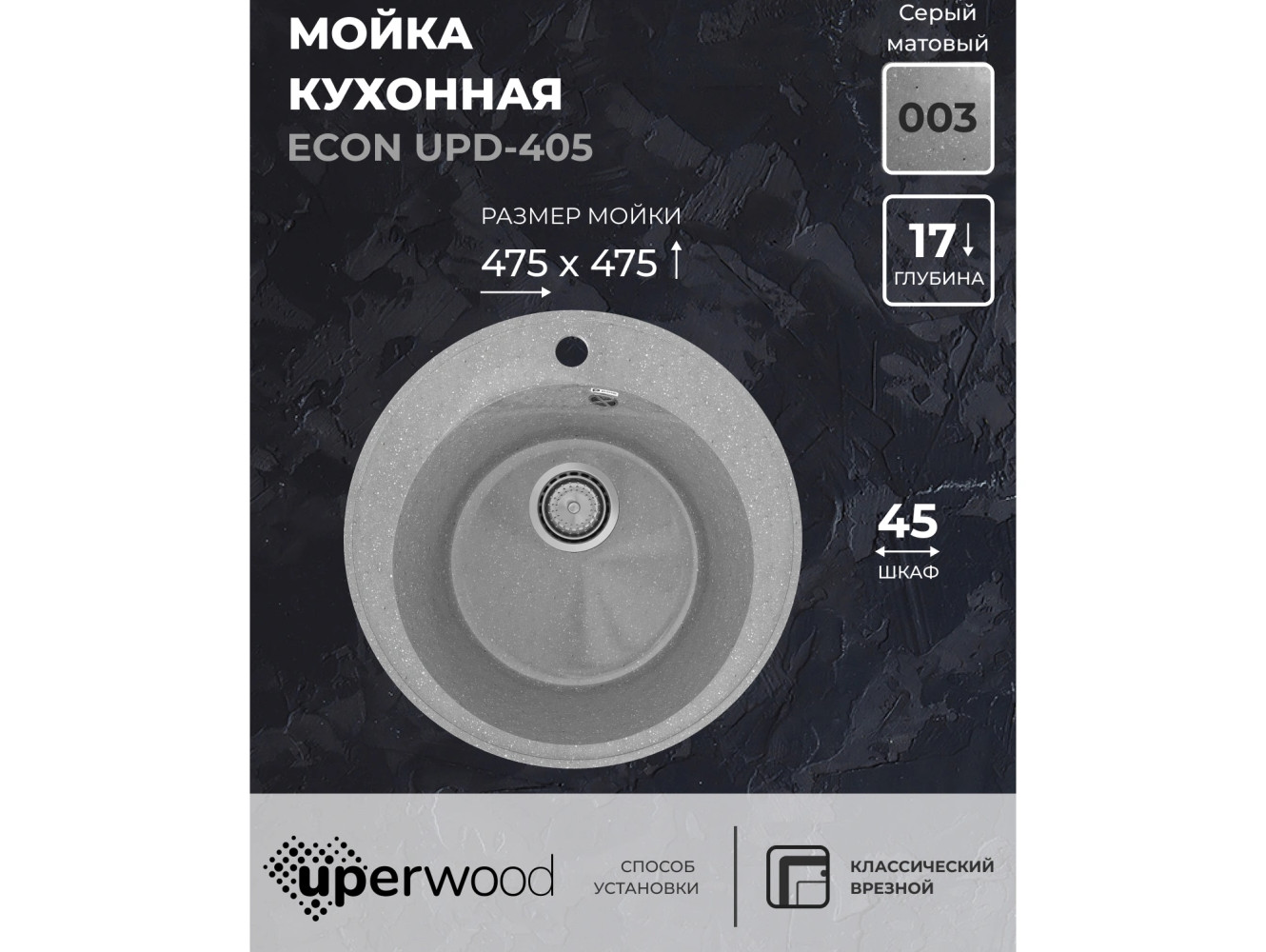Кухонная мойка Uperwood ECON UPD-405-003 серая матовая