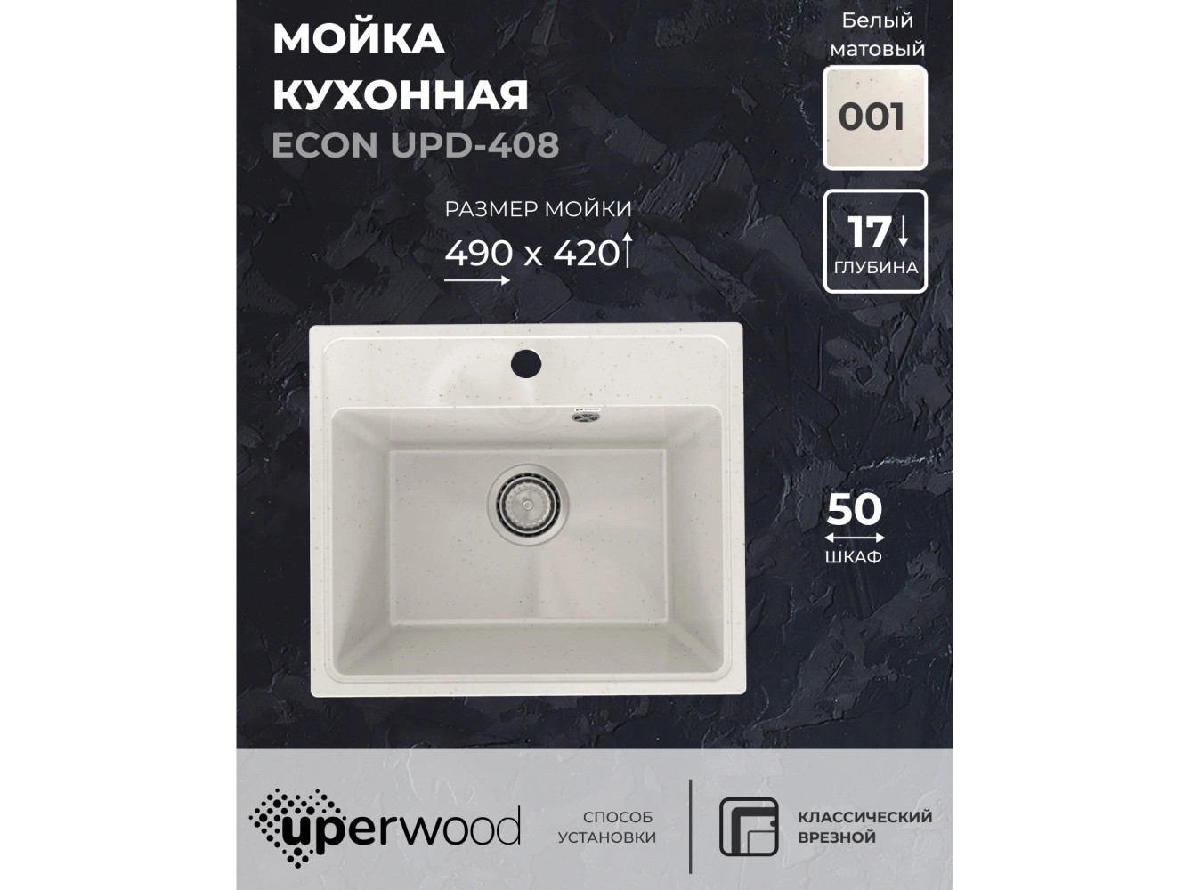 Кухонная мойка Uperwood ECON UPD-408-001 белая матовая