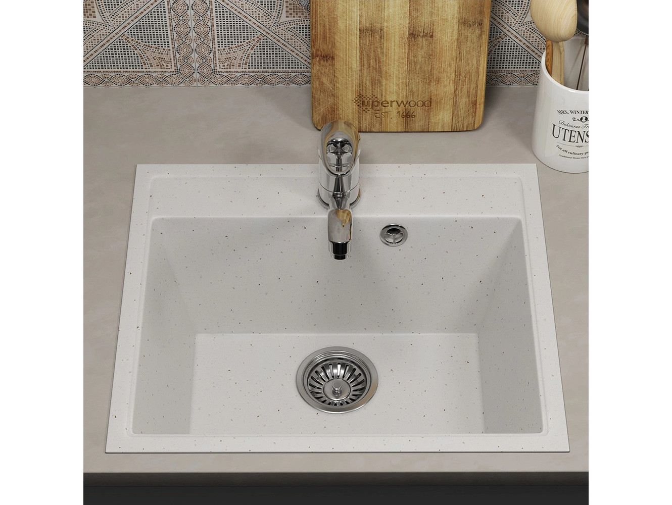 - Кухонная мойка Uperwood ECON UPD-408-001 белая матовая