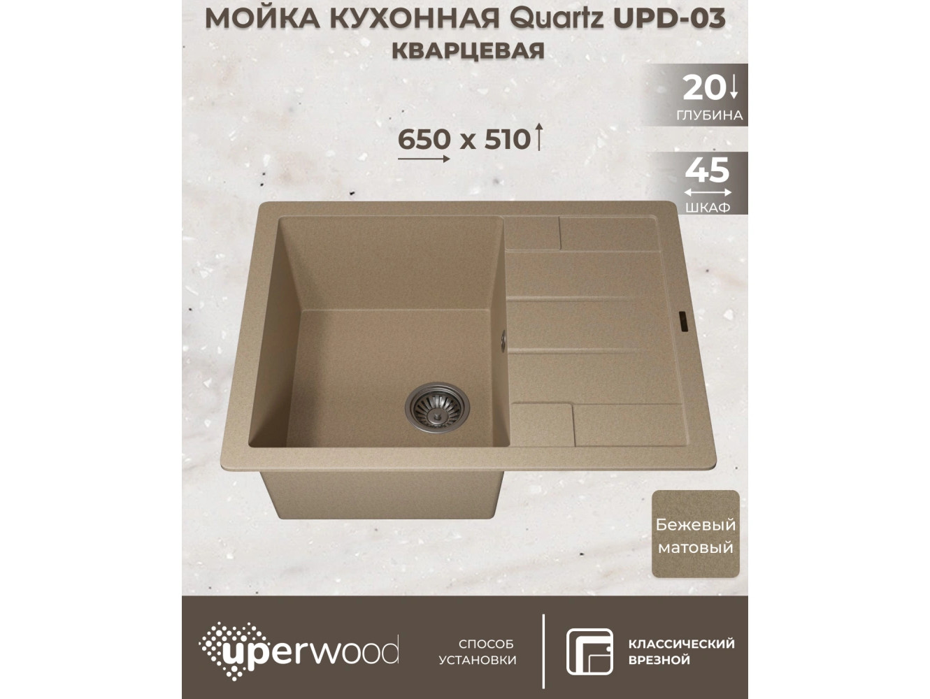 Кухонная мойка Uperwood Quartz UPD-03-02 бежевая матовая