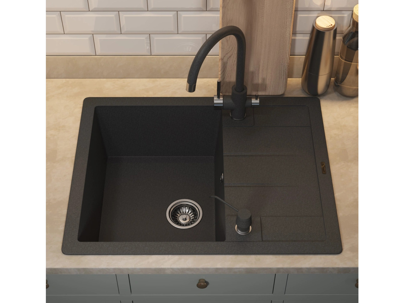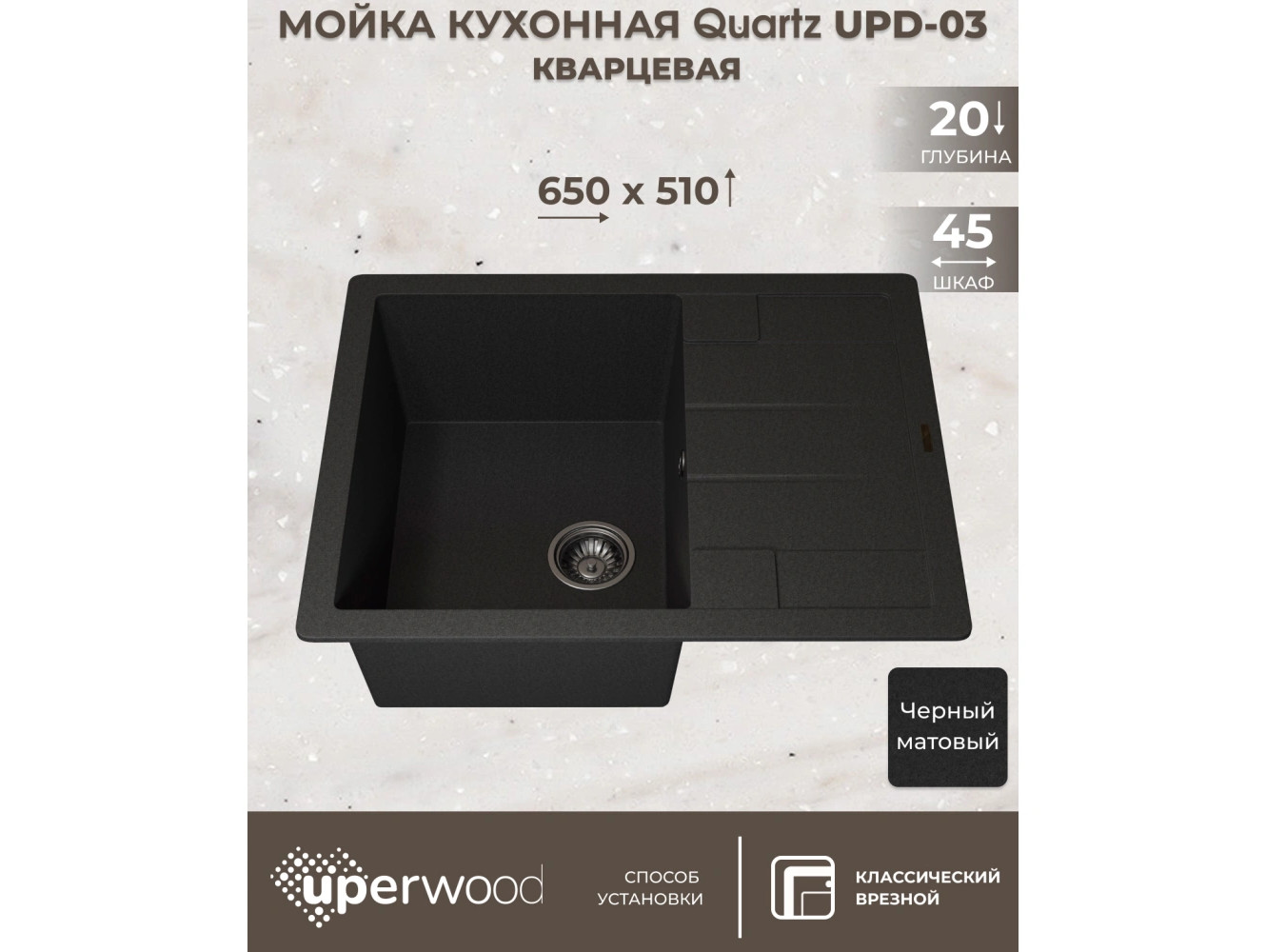 - Кухонная мойка Uperwood Quartz UPD-03-04 черная матовая