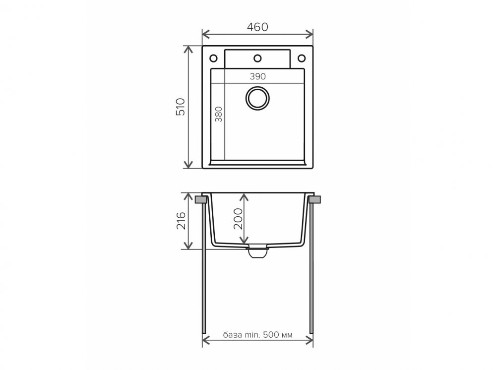 Длина мойки, мм: 460
