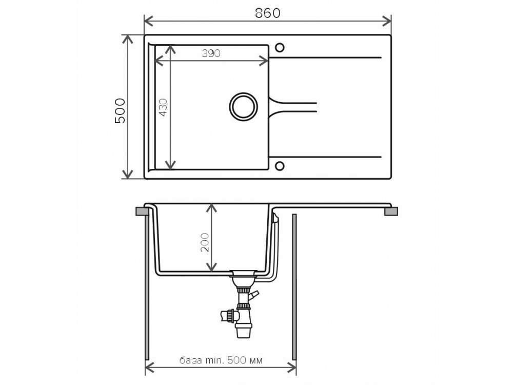 Минимальный размер тумбы под мойку, мм: 500