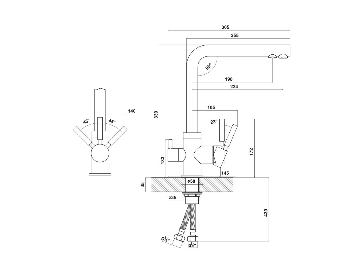 Рычажное управление, керамический картридж 35 мм. Каждый смеситель модели Quartz UPD-03 оснащен встроенным фильтром для питьевой воды и дополнительной рукояткой с рычажным управлением. Высокий поворотный излив. Современный дизайн изделия. Гибкая подводка 45 см в комплекте. Усиленная гайка крепления смесителя.
