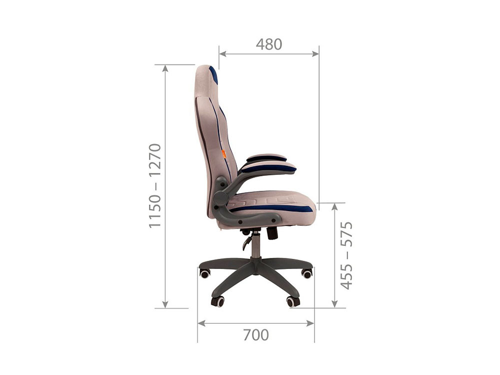 Кресло Chairman game 55 Россия голубой/серый велюр Т71/Т55 пластик черный