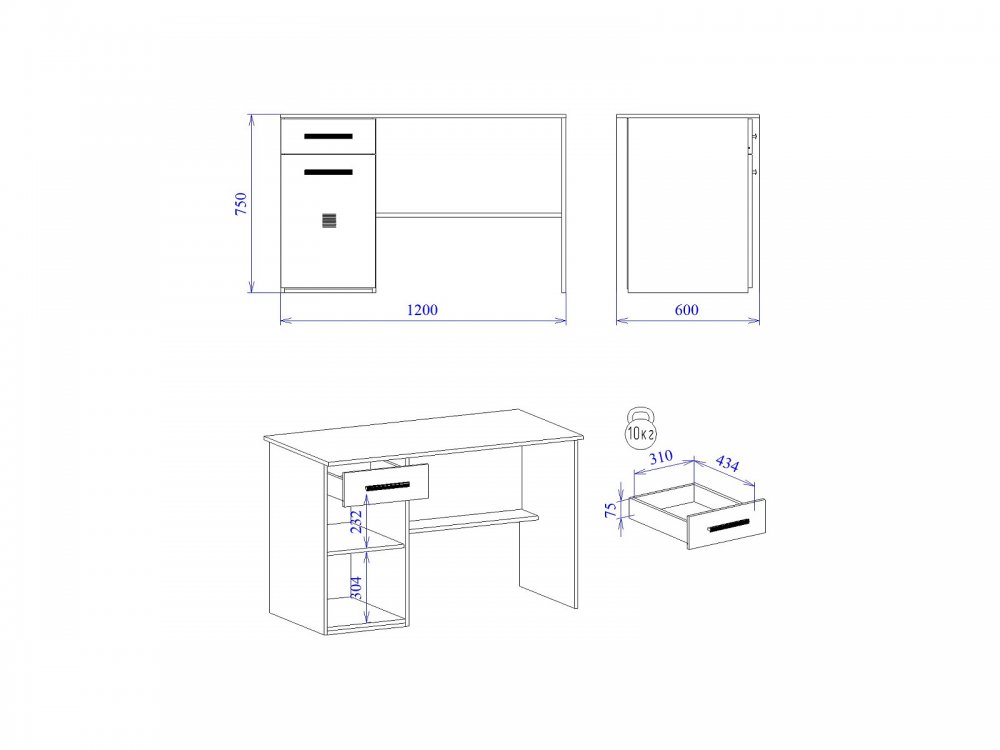 Размер Ш*Г*В: 1200*600*750 мм