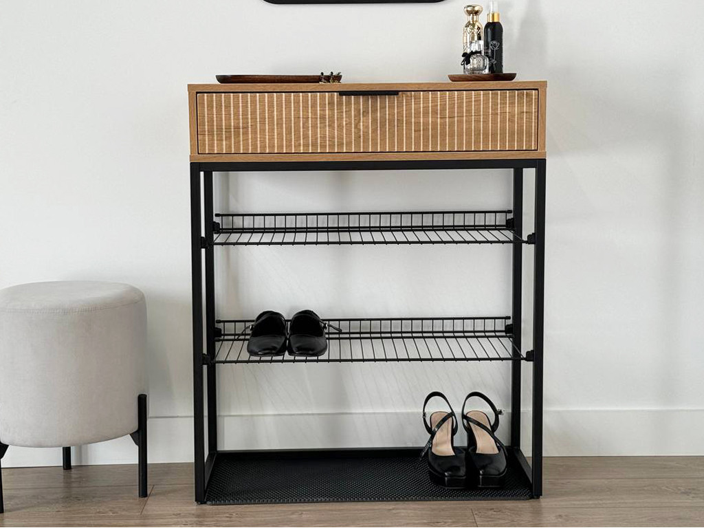 - Обувница Вельвет дуб крафт золотой/акация светлая