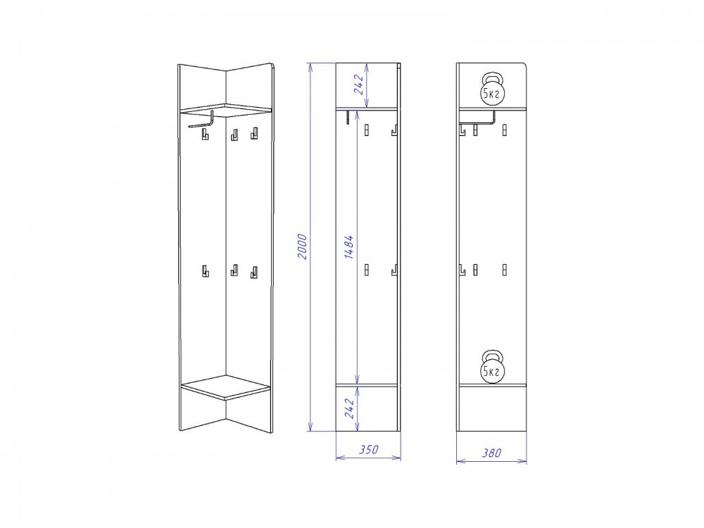 Размер Ш*Г*В: 350*380*2000 мм
