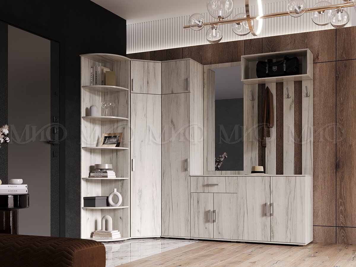 Цена за комплект: Тумба с вешалкой, Тумба с зеркалом, Угловой терминал, Шкаф угловой, Пенал бельевой