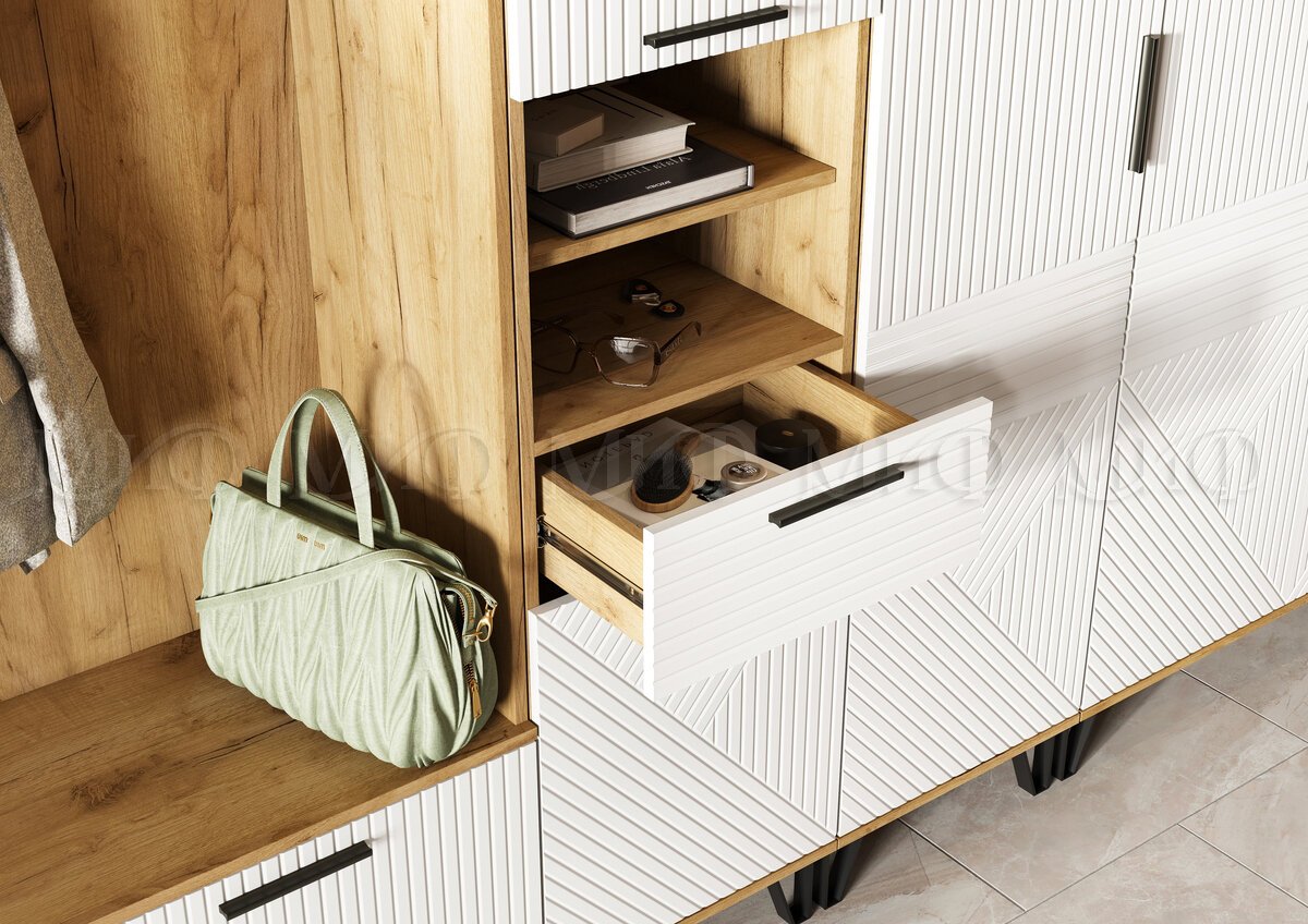 - Прихожая Флэш Браш Вайт, Дуб Крафт