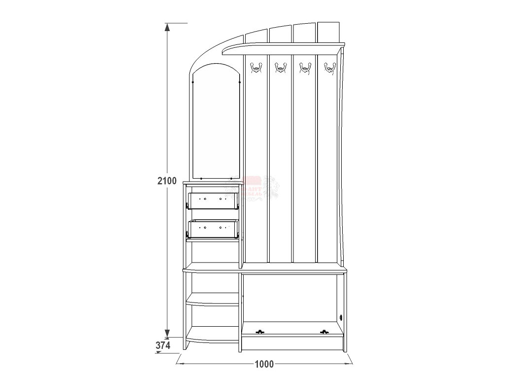 Габариты (ВхШхГ): 2100х1000х374 мм