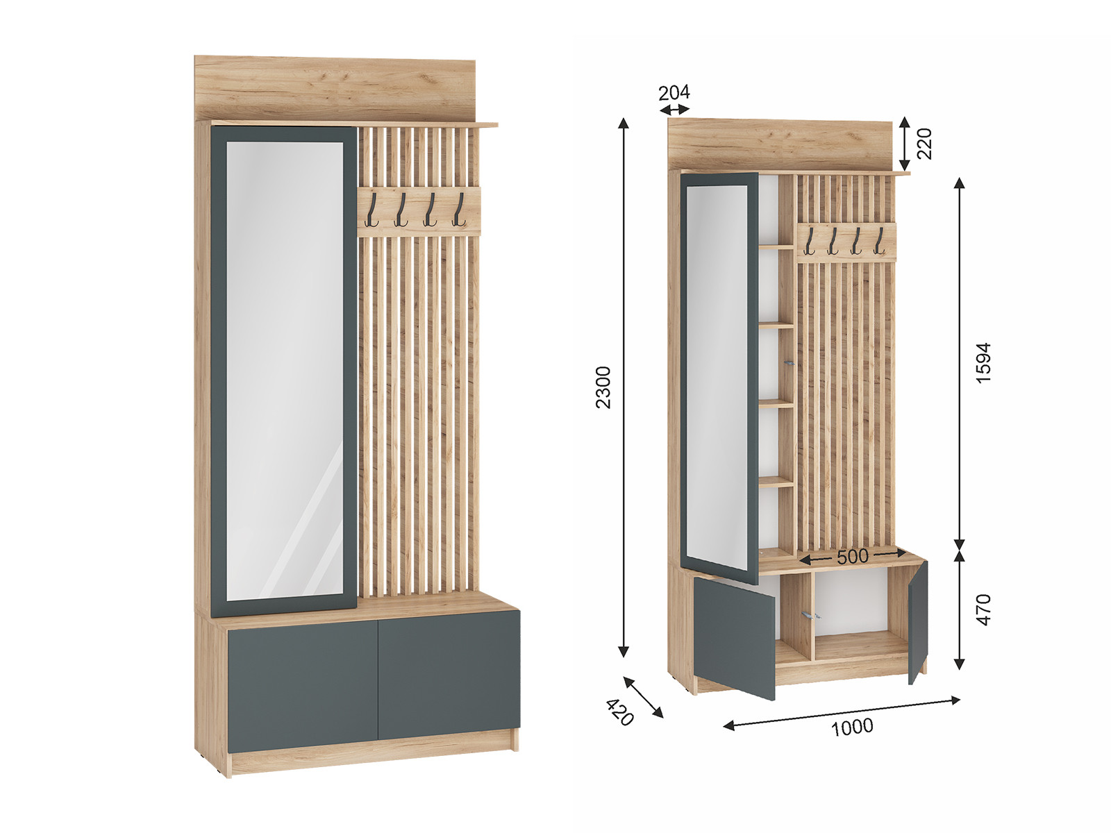 Шкаф с вешалками Флэш Браш Вайт, Дуб Крафт