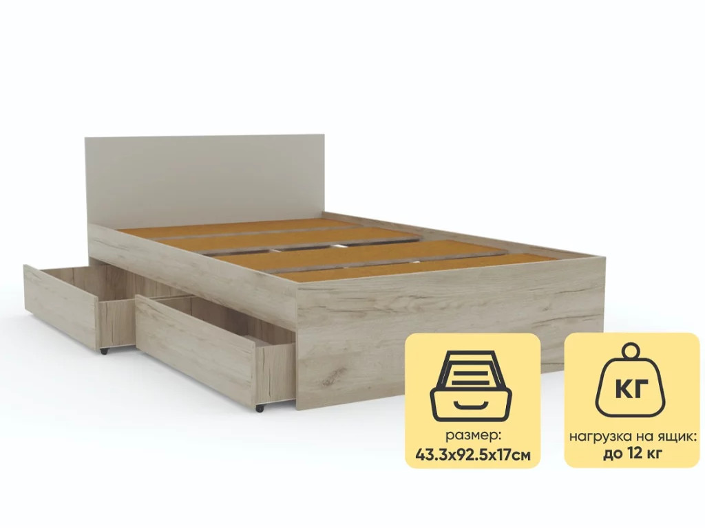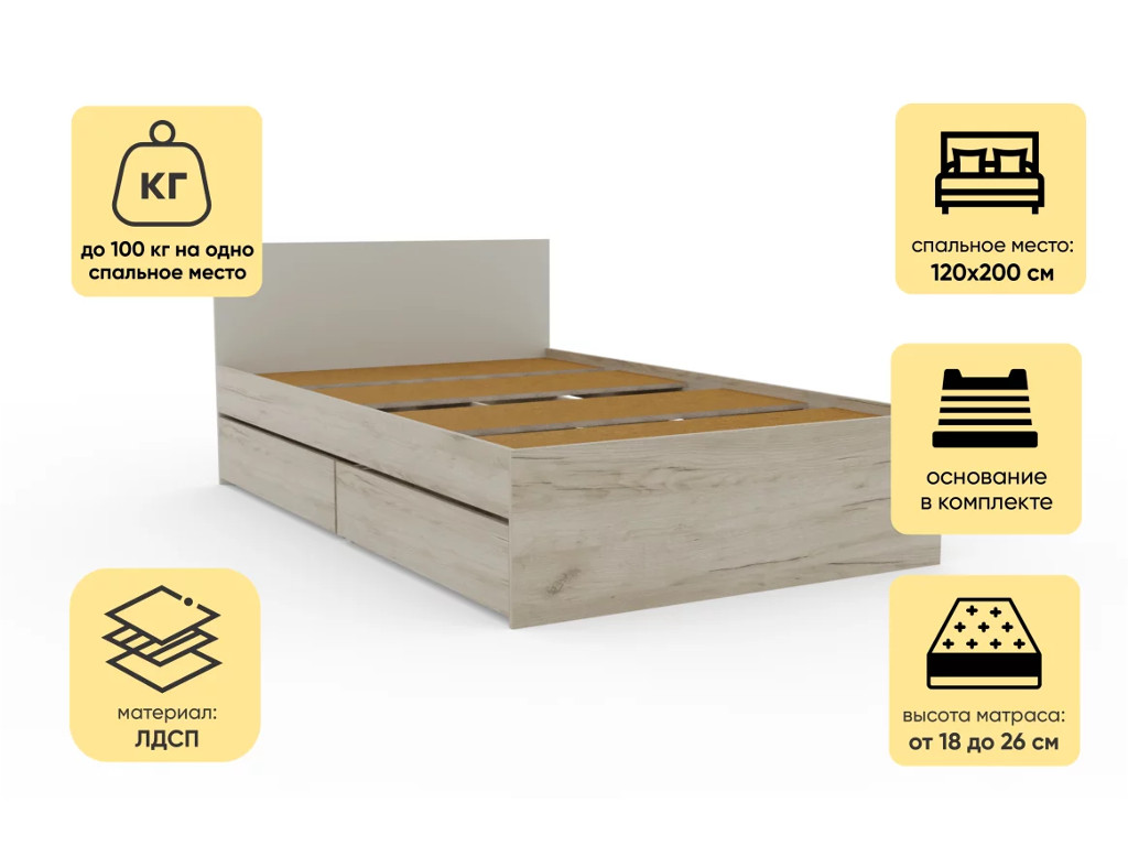 - Кровать Монблан с ящиками 120х200 см Кашемир