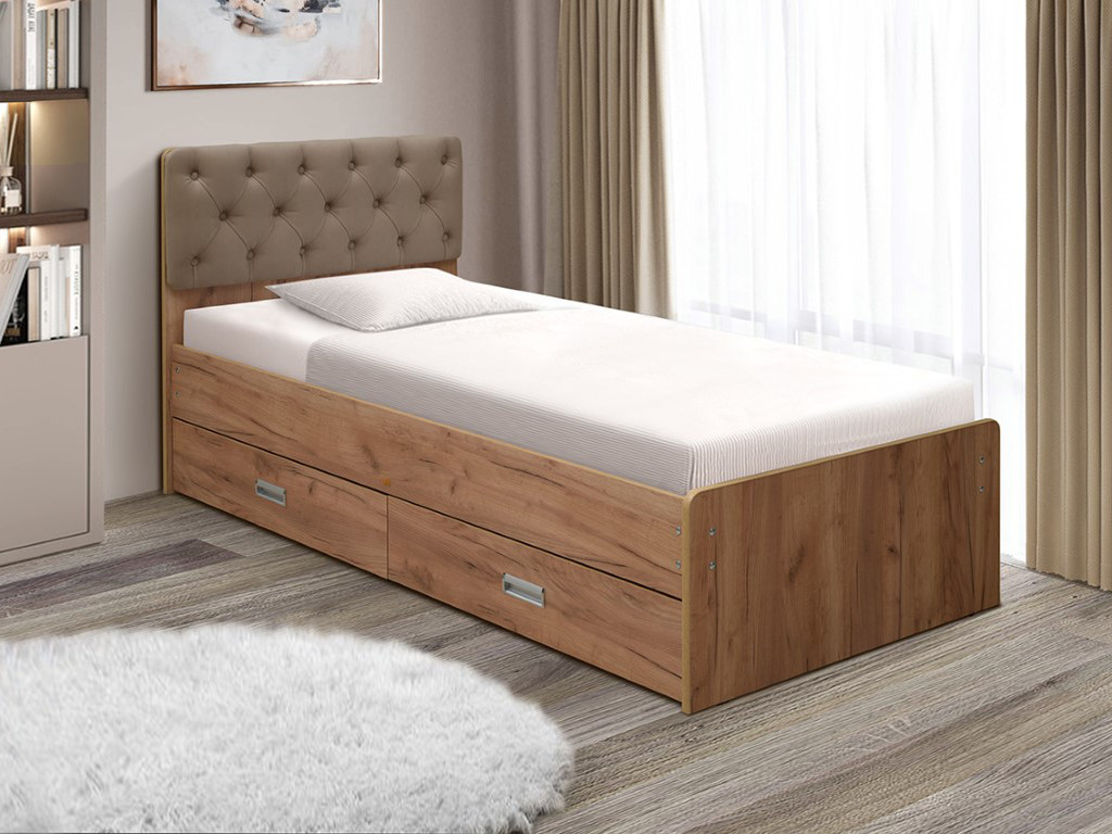 - Кровать одинарная №7 с ящиками 800х1900 мягкая спинка каретная стяжка