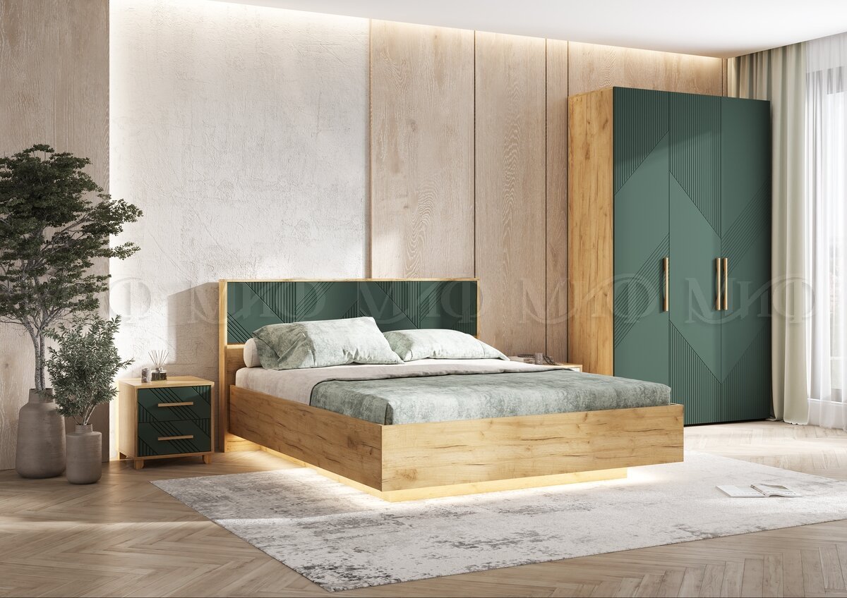 - Кровать парящая 1600 Ирис (с ПМ) Браш Мени Грин/Дуб Крафт