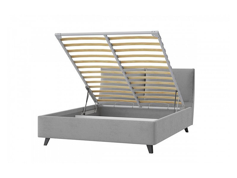 - Кровать Сандра с ПМ 1400х2000 мм микровелюр светло-серый
