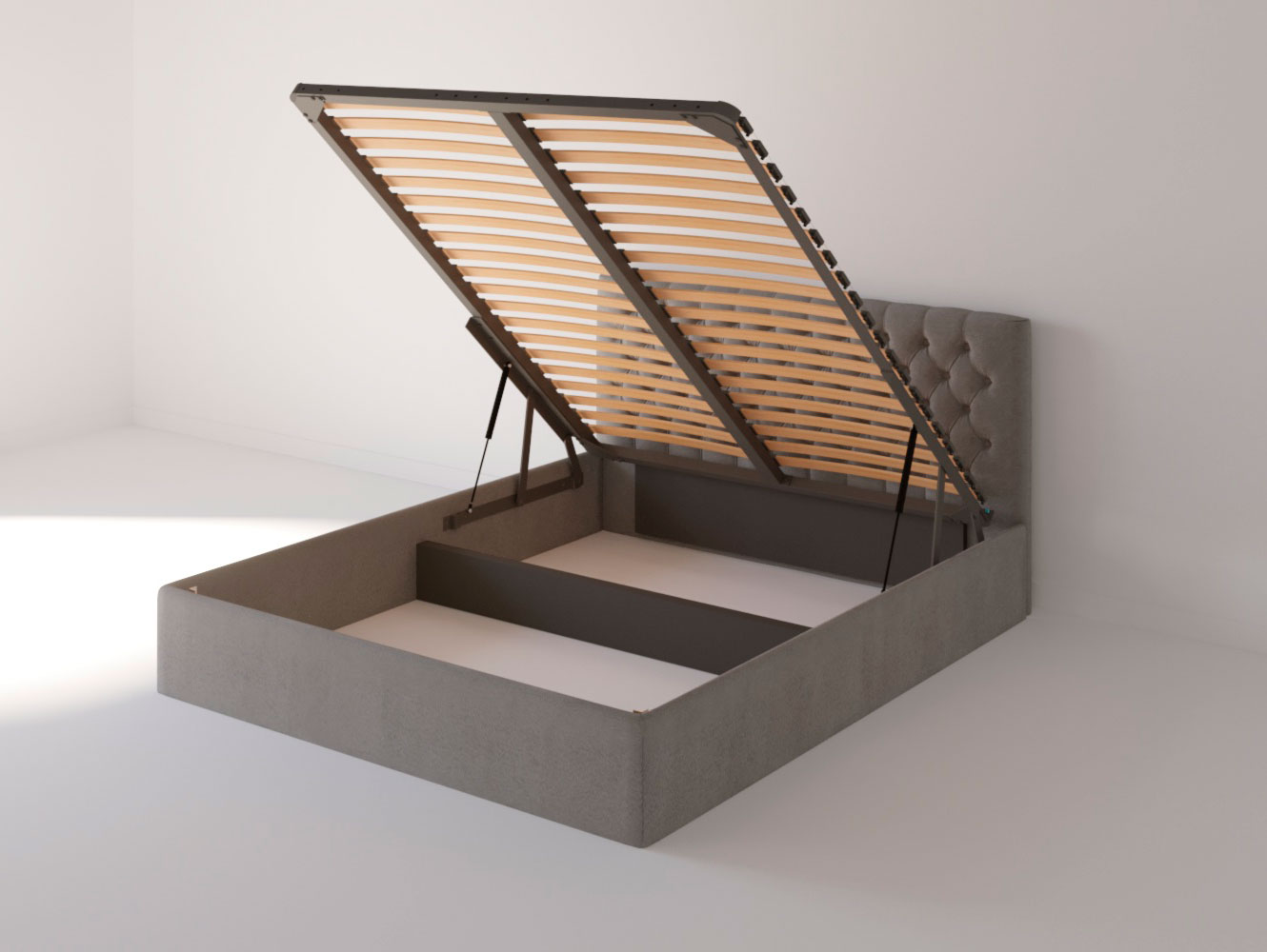 Подъемный механизм: Удобный подъемный механизм предоставляет доступ к пространству для хранения под кроватью, что особенно полезно для компактных жилых пространств. Он прост в использовании и позволяет максимально эффективно организовать хранение вещей.