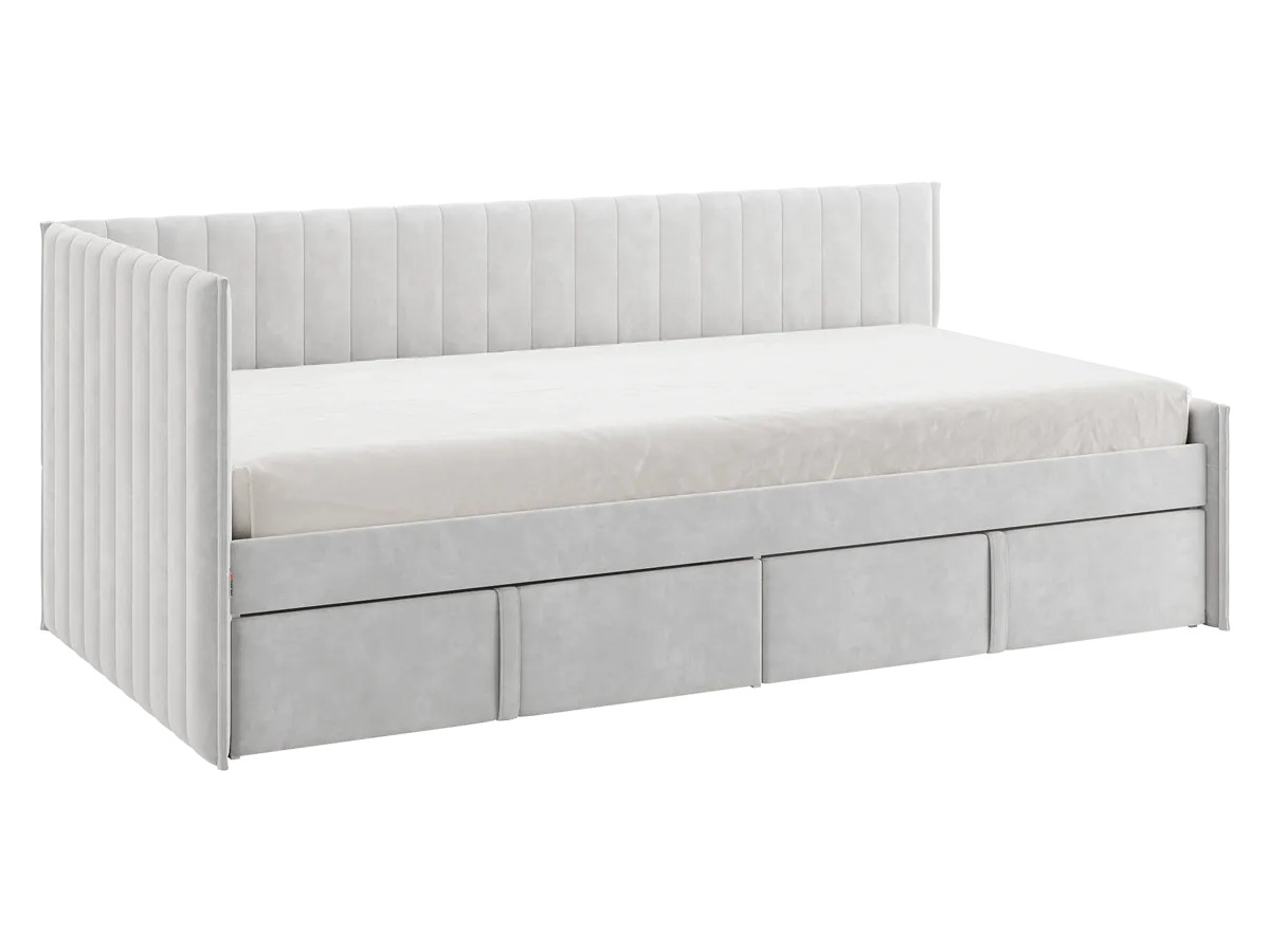 Кровать-тахта с ящиками Твикс цвет велюра галька