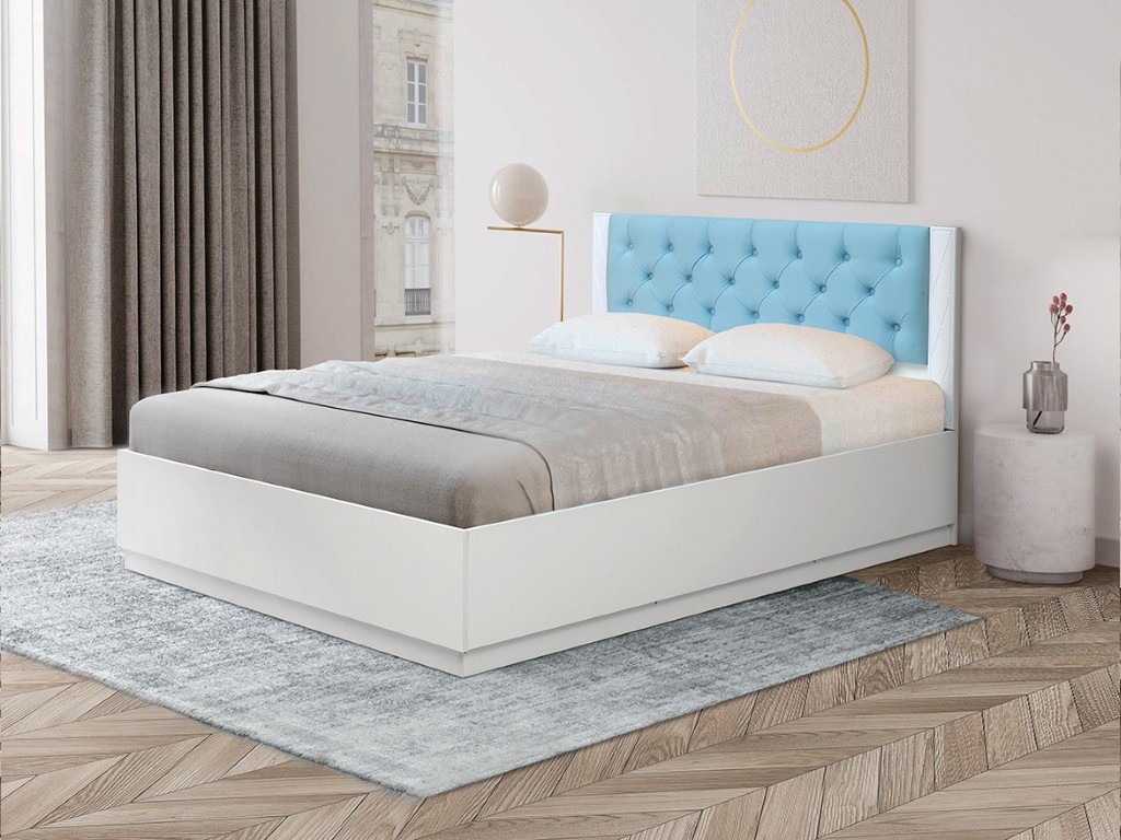 Цвет: ЛДСП Белый, мдф белый матовый, ткань велюр 011 (каретная стяжка)