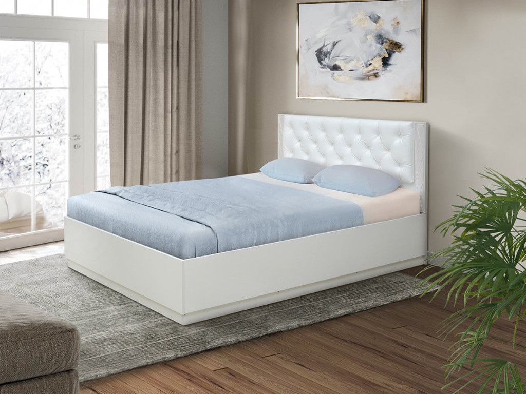 - Кровать Венеция 12.3 1600 основание ладе кожзам белый