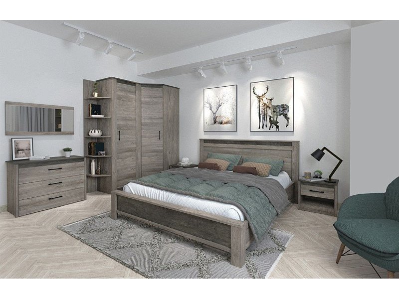 Цена за комплек: Комод малый, Зеркало малое, Шкаф 1-но дверный, Шкаф угловой, Полка открытая, Тумба прикроватная, Кровать Люкс 1600. Ортопедическое основание 1600