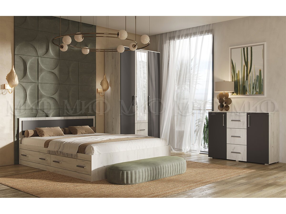 Цена за комплект: Шкаф 3-х створчатый, Кровать 1,6м с ящиками, Комод 3 ящ 2 двери
